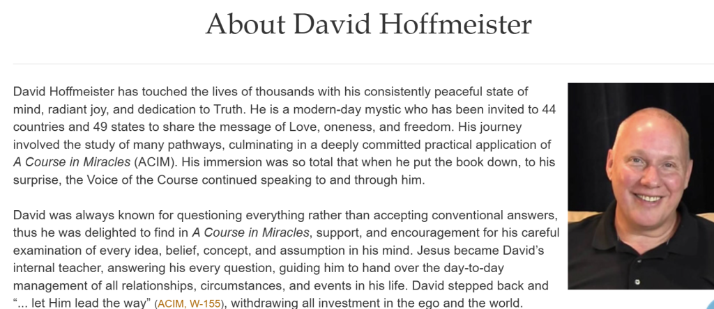 Hoffmeister is widely known for his dedication to A Course in Miracles, a spiritual text emphasizing forgiveness, healing, and awakening. For decades, he has guided thousands of spiritual seekers, teaching practical ways to apply these principles in daily life.